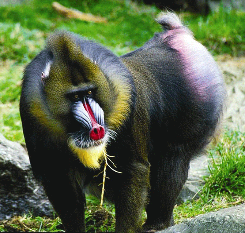 它们特有的面部颜色,使它们很容易与其他灵长目动物区分开来。按阿波奈希所言,一般说来,山魈是群居的,首领通常是雌性,而且成员大部分都是雌性和年轻山魈。