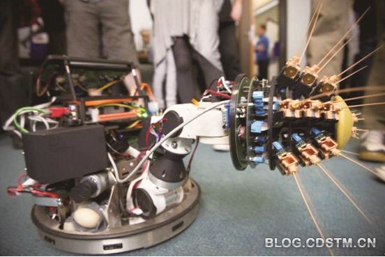 鼩鼱是世界上最小的哺乳动物之一,成年鼩鼱体长只有4 cm左右。由于它们经常生活在洞穴中且常常夜晚出来觅食,它们的视力已经退化得很厉害了,不大看得清周边的环境,但它们却可以用胡须来探测四周的情况。英国研究人员由此获得灵感,设计出一种可以探测深海幽暗环境的鼩鼱机器人。它是一种全新的使用“主动触摸”的方式来探测周围环境的机器人,完全不同于以往使用视觉系统的机器人。