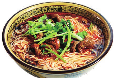 宜宾燃面的历史可以追溯到清光绪年间,因面条重油无水,挑起一根,点火即燃,故而得名。燃面的面条根根浑圆挺硬,煮熟后有劲道。煮面条时要掌握好火候,沸水下锅,待面条断生即捞起,沥干水分,盛入装有鲜板化油和豌豆尖的碗内,浇上红油、酱油,撒上香葱、黄芽菜、芝麻面、花生和核备相会于涪城(今绵阳)东山,刘备提出要品尝当地美食,刘璋就叫山中人家准备了一道菜,以大米磨浆,制成丝,辅以鸡、鱼肉等作料,开水烫熟,汤鲜味美,这就是绵阳米粉。后来民间纷纷仿制,如今,绵阳大街小巷的米粉店常年飘香。地道的绵阳米粉分为红汤和清汤两大类,红汤米粉以酸辣牛肉及肥肠口味为代表;清汤米粉以鸡汁及三鲜口味为代表。