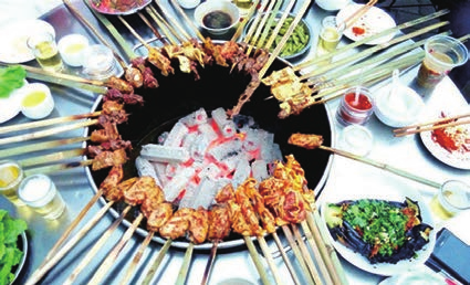 四川凉山彝族人,每到夜晚,喜欢围坐火盆边,将高山土豆、玉米等放入火盆里烘烤,其间或聊家常,或畅饮自家酿制的包谷酒,自得其乐。后来,这种脱胎于当地民俗的“火盆烧烤”,开始出现在凉州首府西昌的街头和邛海景区湖边,经过几番演变成为当地一大特色。这就是“西昌火盆烧烤”。烤乳猪是地地道道的凉山美食,猪都是放养猪,绿色纯天然、肉质紧致,带皮带骨一起烤制,香飘四溢。吃的时候蘸上干辣椒面和豆粉,皮酥肉嫩。而特色韭菜是该店新推出的“绿色食品”,本着“原生态”吃法,在烧烤过程中只刷