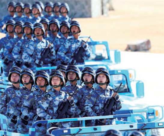 在海上作战群中,“ 两栖霸王花” 首次以战斗员身份亮相沙场。女兵方阵首次亮相于1984年新中国成立35周年阅兵,在之后的阅兵中,女兵都是一道亮丽的风景。据了解,此次亮相阅兵的女兵们的平均年龄20岁,平时训练课目和男兵完全相同,完美展现了新世纪女兵的飒爽英姿。作为“ 两栖霸王花” 不仅要耐得住高温考验,更要经得起严寒历练,这样才能适应未来战争的需要。