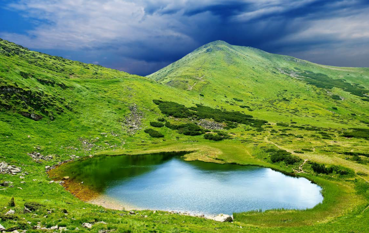 看到周围的风景在不知不觉中发生了明显的变化,原本一望无际的大草原渐渐被起伏不平的长满树木和野草的翠绿山峦所代替,山峦中时不时夹杂着清澈见底的溪流。我知道,心仪已久的目的地就在眼前。此刻,映入我眼帘的情景是: