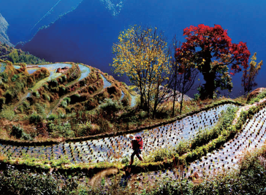 走在石块铺设的石阶上,随处可见风格各异的古民居,这里最老的古建筑有300多年的历史。在路上,能看见挑着农具去田里劳作的男人,蹲在山泉边用山上的水洗衣的女人,在小道上奔跑嬉闹的孩童。日子就是这样有条不紊,平淡幸福。