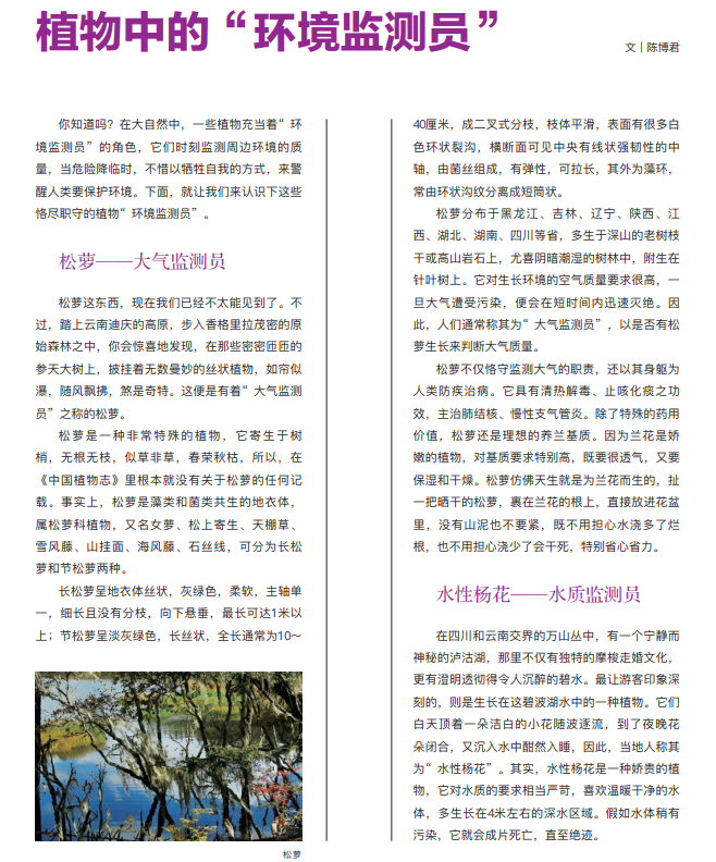 你知道吗?在大自然中,一些植物充当着“ 环境监测员” 的角色,它们时刻监测周边环境的质量,当危险降临时,不惜以牺牲自我的方式,来警醒人类要保护环境。