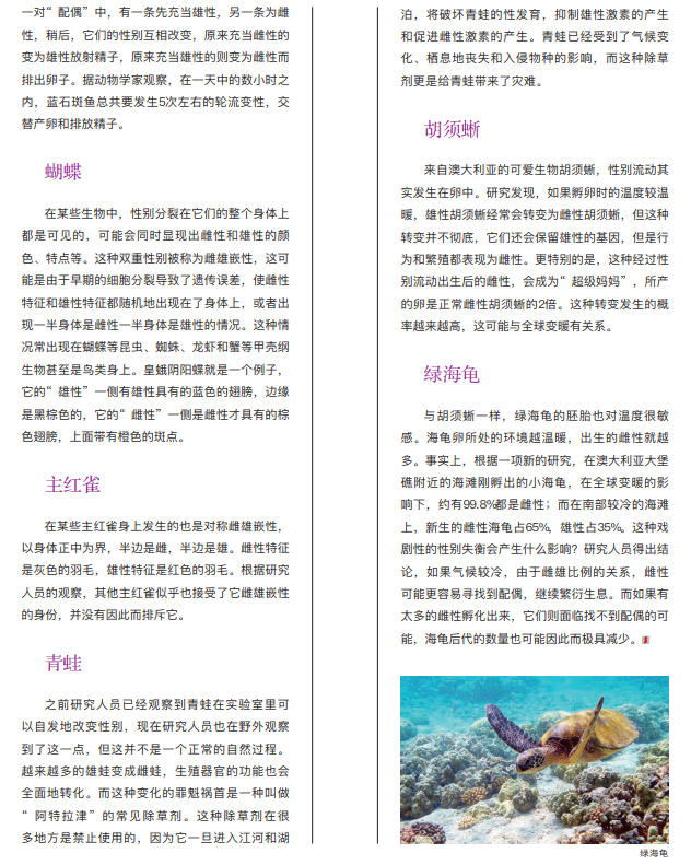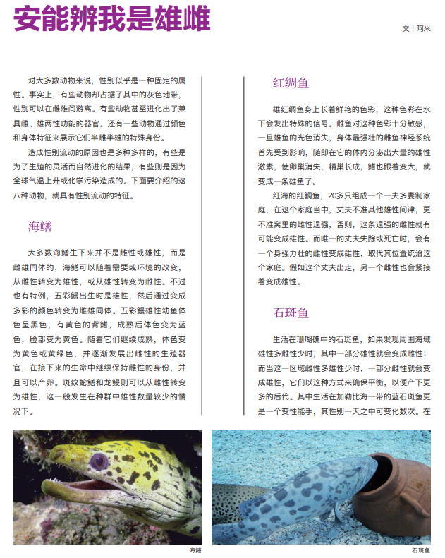 对大多数动物来说,性别似乎是一种固定的属性。事实上,有些动物却占据了其中的灰色地带,性别可以在雌雄间游离。