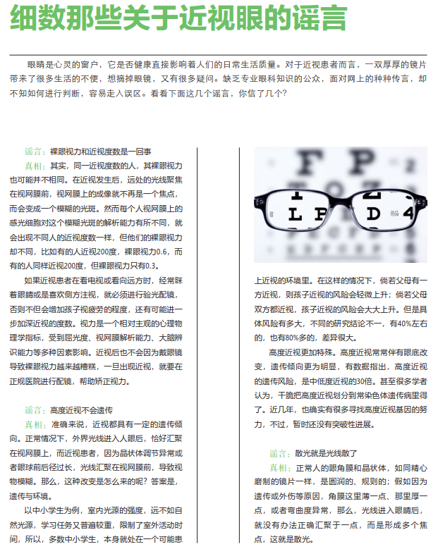 眼睛是心灵的窗户,它是否健康直接影响着人们的日常生活质量。对于近视患者而言,一双厚厚的镜片带来了很多生活的不便,想摘掉眼镜,又有很多疑问。