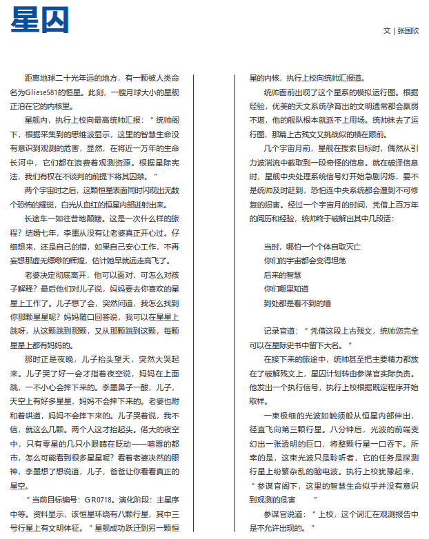 距离地球二十光年远的地方,有一颗被人类命名为Gliese581的恒星。此刻,一艘月球大小的星舰正泊在它的内核里。