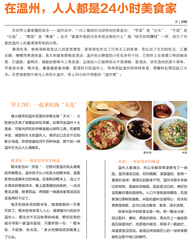 在世界上最难懂的语言——温州话中,一日三餐的叫法却特别形象直白:“早饭”是“天光”,“午饭”是“日昼”,“晚饭”是“黄昏”。