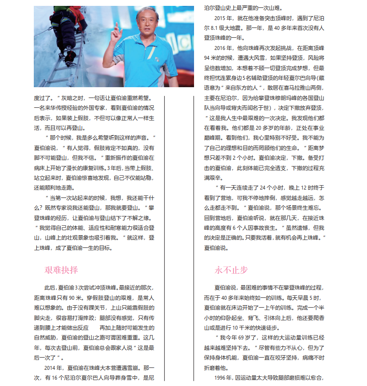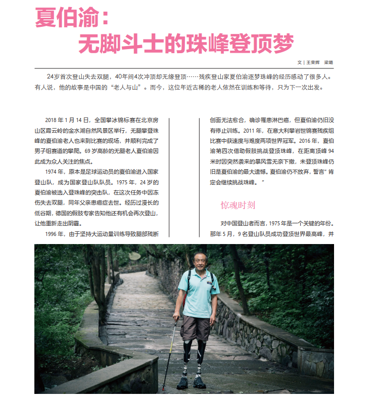 24岁首次登山失去双腿,40年间4次冲顶却无缘登顶……残疾登山家夏伯渝逐梦珠峰的经历感动了很多人。有人说,他的故事是中国的“老人与山”。