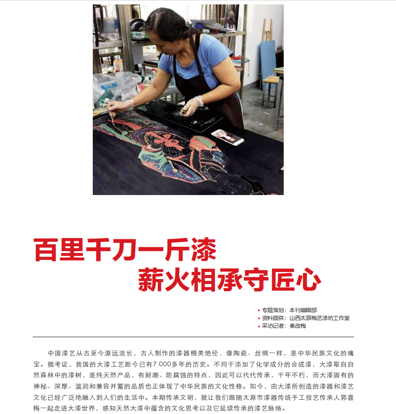 中国漆艺从古至今源远流长,古人制作的漆器精美绝伦,像陶瓷、丝绸一样,是中华民族文化的瑰宝。