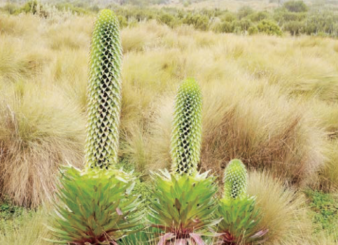 东非地区处于地壳运动的活跃带上,因此有数座高山矗立其上。从山脚下的稀树草原到山腰的雨林和苦苏花、东非罗汉松为主的山地森林,再到3000米以上的欧石南灌丛,而3600米以上则是千里木的地盘,它们用高大的乔木状身躯组成稀疏的“森林”景观——这也是东非高山区最傲人的景观之一。