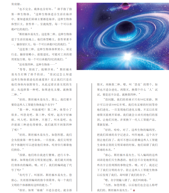 这是一个位于银河系第三旋臂边缘的星系。这是一颗位于星系内距离恒星第三远的蔚蓝色行星。这颗行星大约能存活100亿年,现在虽然只有10亿年的星龄,却已孕育出强盛的文明……
