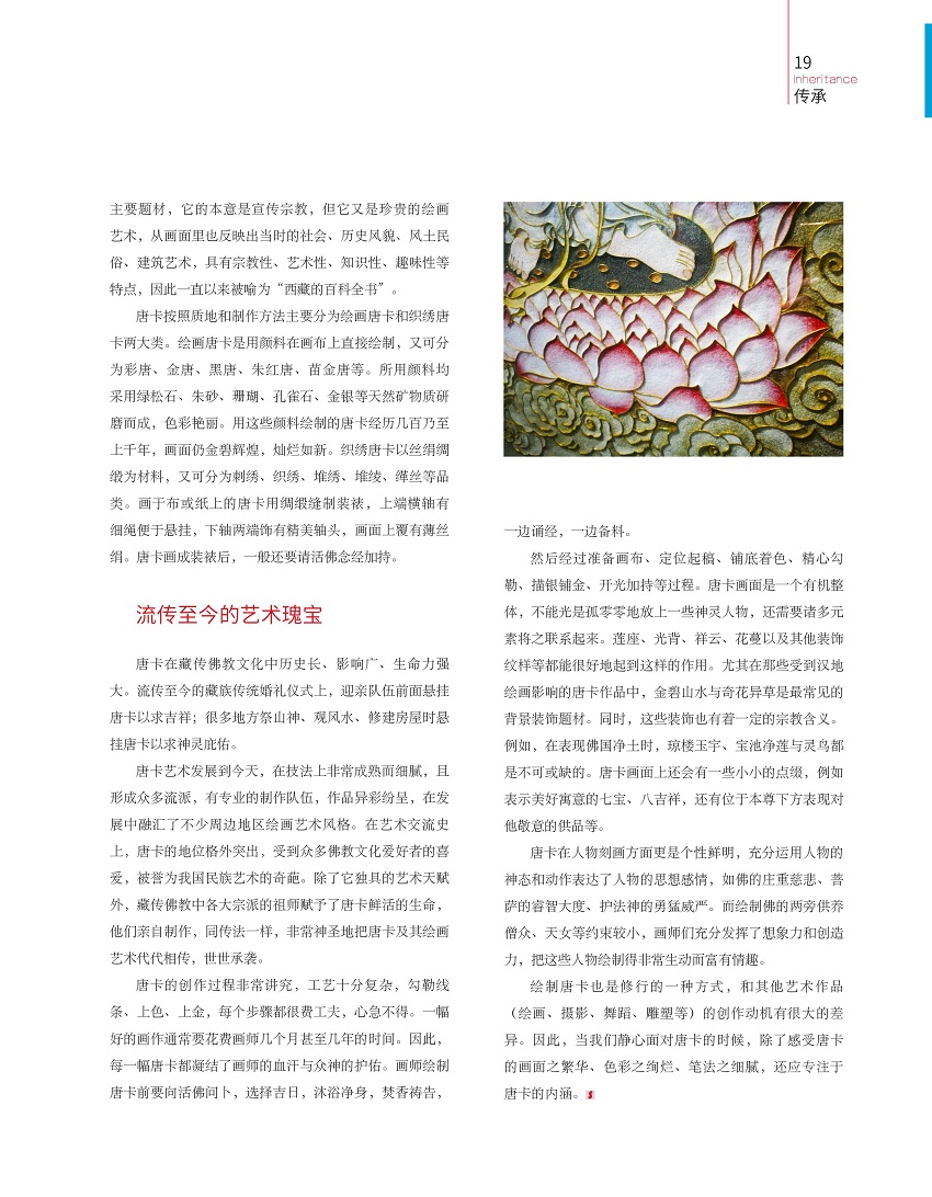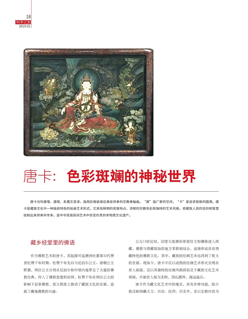 唐卡也叫唐嘎、唐喀,系藏文音译,指用彩缎装裱后悬挂供奉的宗教卷轴画。“唐”指广袤的空间,“卡”是追求极致的圆满。