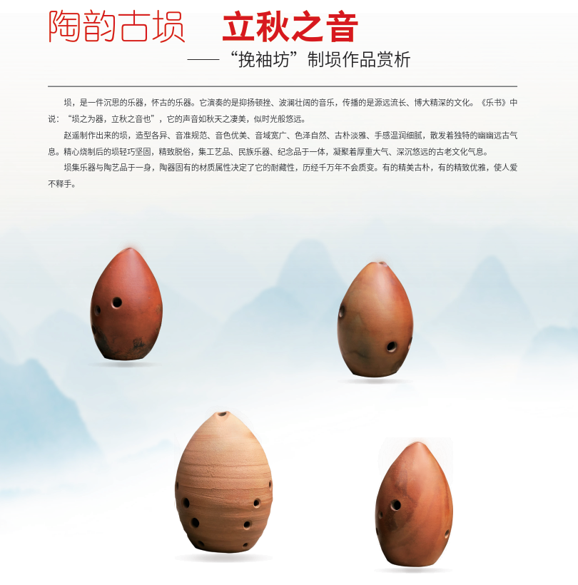 埙,是一件沉思的乐器,怀古的乐器。它演奏的是抑扬顿挫、波澜壮阔的音乐,传播的是源远流长、博大精深的文化。