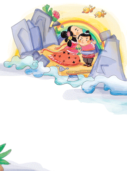 马上就要见到妈妈啦,沉香深深地吸了口气,将大斧子举过头顶,用尽全身力气砍下去。“喀啦喀啦⋯⋯ ”华山真的裂开了。一道五彩的光芒冲向天际。“妈妈,妈妈!”沉香高喊着奔向妈妈。“我的好孩子,谢谢你!”妈妈和沉香抱在了一起。树木在为沉香欢呼,鸟儿们飞来庆祝,太阳公公发动魔法,把沉香和妈妈流下的泪水变成了一道美丽的彩虹……从那天起,沉香和妈妈一起过上了幸福快乐的生活。