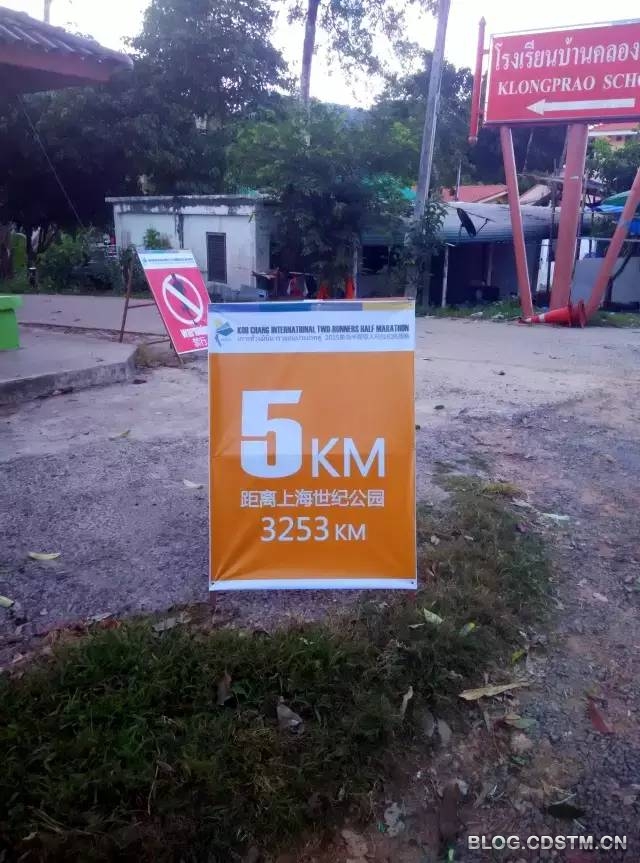泰国是靠左行驶的国家,这是公路赛段需要注意的问题。清晨象岛路上的行车并不多,偶尔骑摩托车驶过的当地人也会热情的打招呼,路边小商铺的主人也会在路边与参赛者击掌加油,更有一名来此度假的外国游客中途加入了比赛。这就是马拉松的魅力,参与性极强,运动中所获得的能量让人尤为感动。每跑一步、每过一段都有不同的风景。当看到5KM标示牌时,表明我已经超越了个人最好成绩,更坚定了完赛的决心~~