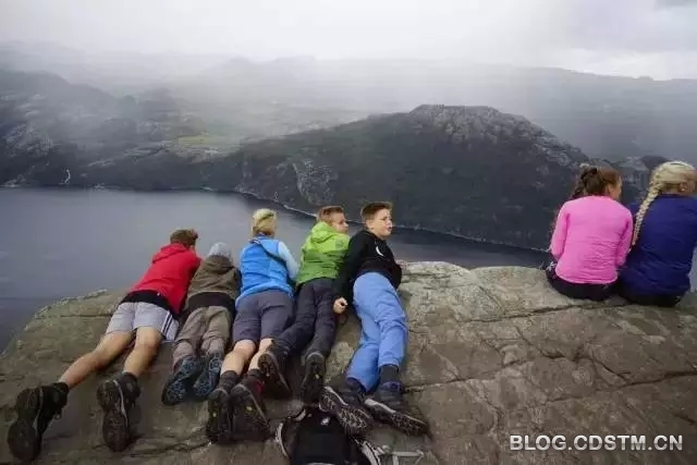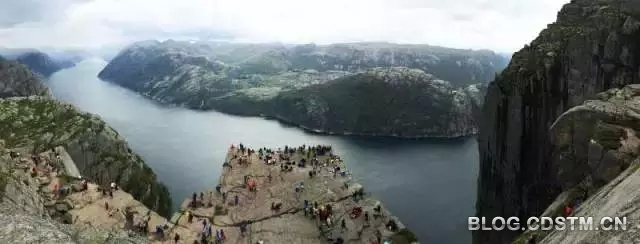 航班落地挪威首都奥斯陆后,我们就马不停蹄赶往斯塔万格,这里有始终吸引各地专业级摄影发烧友们的“山顶奇迹”步道石。位于吕瑟峡湾的布道石垂直落差达到600多米,登山者要经过大约2个半小时的攀爬,才能到达山顶约为625平方米的天然平台。