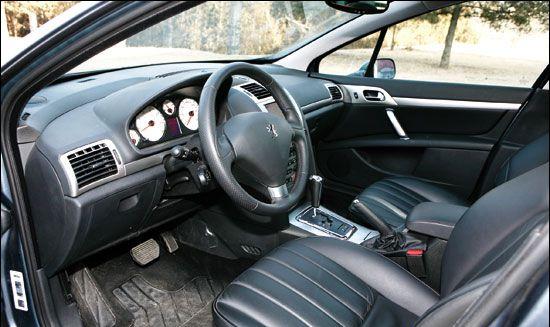 也许是为了做到表里如一,标致在407主销的2.2 L车型上采用了一款全黑的内饰风格,在点缀上钛银材料并搭配白色仪表圆盘后将整车的运动气质渲染到了顶点。全黑的真皮座椅上有意使用的条纹线条很有一股跑车的味道,打孔的真皮方向盘手感不错且利于抓握。