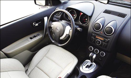 逍客的内饰似乎在追求着一种含蓄,当人们把注意力全部集中在它的外表上时,你也许真的会对它的其他地方满不在乎了。如果是一辆轿车,你或许并不会接受眼前这样一个格局,但用在逍客上面,你的宽容让一切看上去都显得协调起来。你会毫不犹豫地将这种内饰风格理解为简洁和实用,仪表盘、中控台、方向盘这三大组件的存在似乎已经足够了,智能遥控钥匙系统、带功能控键的真皮方向盘、丰富的存储空间一下子成为了过于奢侈的配置。其实细细想来,逍客内饰里常用的配置一个都没有少,对于该车特殊的身份来说,精简一些未必就是一件坏事。
