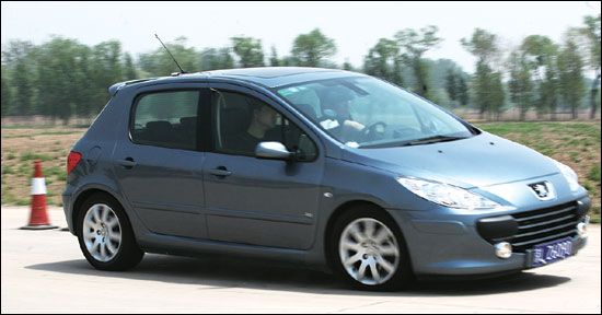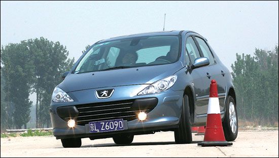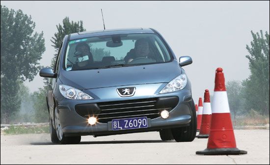 轴距及车身变短让307两厢看起来更加紧凑,因此在进行绕桩测试时,它会表现得更加自信和灵巧。刚性十足的底盘以及所使用的宽轮胎保证了该车良好的转向操纵性、横向路面附着性和横向行驶稳定性,这让它很难出现甩尾的现象。绕桩时的车速接近了60 km/h,且轨迹均匀,这也是对整车良好行驶性能的印证。