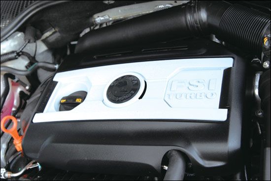 在所有使用涡轮增压的厂商中,大众/奥迪集团是最积极的一个了,国内目前常见的涡轮增压车型大多出自大众/奥迪旗下:帕萨特1.8T,迈腾1.8TSI,新A4 2.0T,斯柯达明锐1.8TSI等。在欧洲,其1.4TSI发动机连续两年在同级别发动机评选中获得世界最佳发动机之称,这款发动机不久也将在国内生产。明锐1.8TSI发动机由大众一汽(大连)发动机有限公司生产,属大众集团最新研发的EA888系列,它是大众集团首次面向中国引进的全球同步生产的一款产品,主要优势在于动力、油耗和环保等方面。该发动机采用了涡轮增压和缸内直喷技术,排放达到了欧Ⅳ标准,由于该发动机采用了轻量化设计,重量比同类型要轻10 kg左右。相比酷宝1.8T,明锐的1.8TSI采用了很多领先技术,除了缸内直喷和可变气门正时之外,带静音效果的凸轮轴传动链条和经过改良的双平衡轴也大大提高了发动机运转的平顺性,并降低了噪声。