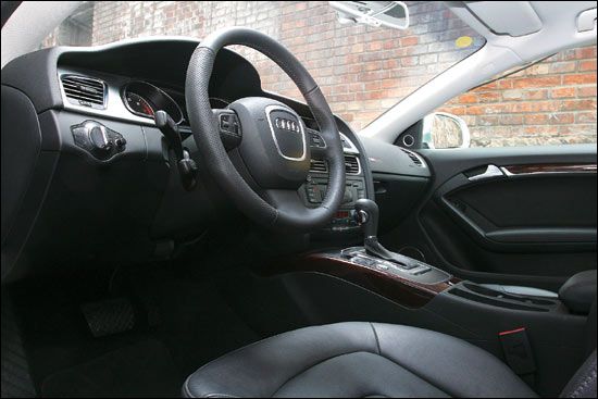 奥迪A5在奥迪品牌中的定位清晰到了一目了然,它应该算是我见过的最大气的双门轿跑车了。从基础尺寸上看,它的轴距介于A4与A6之间,要不是压低的车身,一瞥之间你很容易会误认成A6,起码在宽度上,两款车并没有太大的分别。这几乎让A5拥有了可以媲美A6的车内空间,当然仅限于前排。A5的座椅并没有一味地追求轿跑车惯有的强烈的包裹性,它将舒适适度地融入了其中,这样的结果是,米莱诺的品牌也许比运动座椅的型式更会引起你的注意。但你千万不要以为,奥迪A5作为一款轿跑车有些不务正业了,事实上,配置对于轿跑车而言仅仅是一种提升自我形象的筹码,坚硬的底盘、双开门的结构、俯冲的车身……这些轿跑车上的鲜活特点仍然是A5有别于其他奥迪同胞的根本所在。
