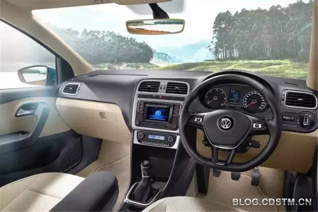 内装方面,Ameo采用黑色与米色双色搭配,中控台功能布局也基本延续了POLO车型的设计。