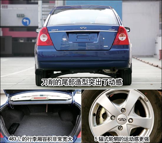 奇瑞A5 1.8 L的综合性能好,没有明显的弱项。其后排腿部空间宽敞;尽管短小的尾部向下收缩,但是并没有对后排头部空间造成太大影响,再加上座椅位置较高,后排乘客可以保持相对舒服的坐姿。A5 1.8 L的底盘调校相对硬朗,增强了运动感,足够的侧向支撑力让车身在高度过弯时感觉不到明显的倾斜,方向盘操控灵活,而5挡手动变速器和发动机之间的匹配在自主品牌中也算是不错的,换挡时没有突兀感。