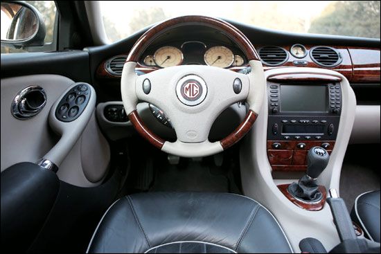 大面积整幅桃木的采用使MG名爵7的古典色彩更浓,深色座椅突出了运动感