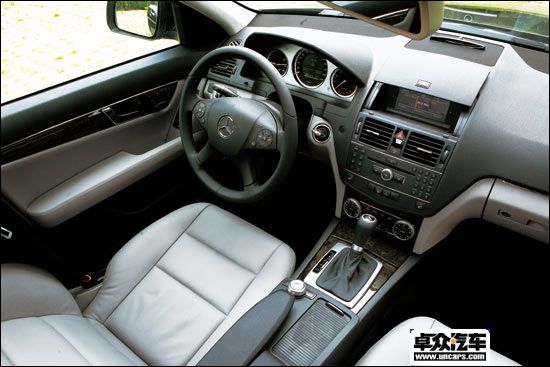 我们试驾的这款奔驰C230时尚型的内饰采用了深浅搭配的典雅风格,你当然也可以选择另一款纯黑的运动内饰,但与黑色车身的搭配总会让人感觉有些过火。深浅搭配内饰的好处是显而易见的,特别是中控台上部采用深色的型式,在阳光充足时的行驶并不会让人感到晃眼,而车身内部整体采用的浅色调又会让车内的舒适性大大提高。