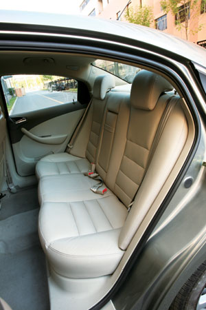A3深浅搭配的双色调内饰很自然,作为一款家庭用车容易被人接受。银色的旋钮布置在青灰色的一体中控台上,试图营造一种豪华的感觉,但是大量塑料件的采用降低了档次。各种按键大小适中,回弹有力,空调旋钮用镀铬包边,设计精致。中控台的弧线形顶部比较突出,小屏幕上还可以显示室外温度。方向盘和仪表盘的样式并不新颖,在奇瑞的其他车型比较常见,清晰的仪表盘读数还算实用,EPS的采用也是A3的一大特点。从整体上看,A3的内饰做工比以前有所提高,但是与合资品牌相比仍有一定差距。A3注重人性化设计,储物空间比较丰富,手刹左端的方形储物格、顶部的储物盒可分别存放长短不同的物品,空调旋钮下面的弹出式储物格可放置一些票据、排挡座前面的方槽可放置手机,其他地方还有很多储物格。前排乘客的杯座设计在手刹后面,位置有些靠后,不方便;后排乘客则方便很多,杯座就设计在中央扶手上。A3后排座椅的坐垫长度比较短,影响了乘坐舒适性,后排空间比较有限,尤其是腿部空间,当一名1.75m的驾驶者调好座椅后,后排乘客的腿部离前排靠背只有一拳的距离,后排头部空间还算可以。下车后长按锁车键可以遥控关闭4个车窗,遗憾的是不能遥控降下车窗,否则夏天会非常方便。