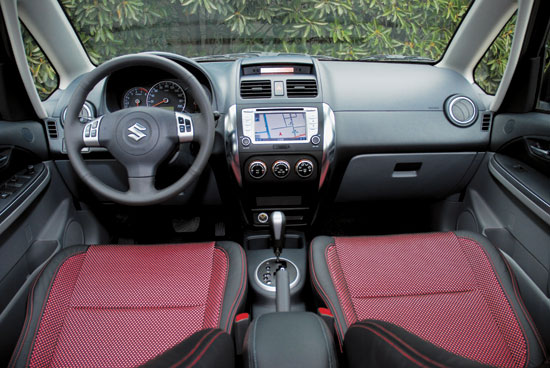 天语SX4的两厢车型仍然使用了深色的运动内饰,运动型的真皮网眼座椅也进行了色彩的匹配,上面再点缀上“SX4”的字样,看上去运动味更加浓烈。内饰的主体造型没有变化,但在中控台上增加了6.5英寸的触摸式液晶显示屏,同时增加的功能性配置包括全新的GPS电子导航系统、SD卡读取式影音播放系统以及越来越广泛使用的MP3音频播放功能,不过,这些让人眼馋的配置仅限于新推出的1.8L排量车型,已有的1.6L车型上是没有添加的。