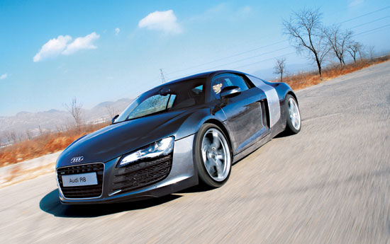 它是谁?超级跑车的世界怎么会突然有它?现在我仍然难以回答,有些“懵”的或许还有你。它来挑战911吗?还是F430?是的,答案很清楚,就是它们!难道你没看见,原本属于法拉利和保时捷的客户突然移情别恋了吗?喜欢刺激的“花花公子”们没有定力拒绝来自R8的诱惑,世间怎么会有这么火辣腰身的尤物呢?!当然,诱惑不仅仅来自于R8的美貌,还有那个具有传奇色彩的“银剑”祖先的庇护,要知道,上世纪30年代就突破400km/h的“车神”不是法拉利、保时捷,也不是叫什么布加迪的家伙,而是头顶4个圈的“银剑”。也许R8还从它的同门兄弟兰博基尼那里偷学了一些武艺,这是极有可能的,谁都知道这个从不把法拉利放在眼里的大师兄可不是等闲之辈。