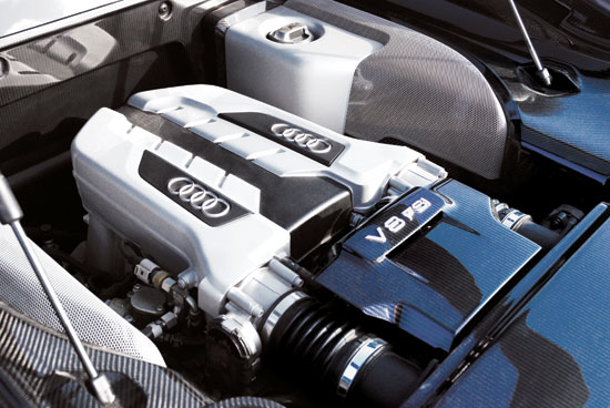 它是谁?它谁也不是,它就是它,它就是奥迪R8,一个武林为之震颤的江湖小辈,一个一身绝世武功刚现江湖就威名远扬的大侠。它师承名门,它身怀独门绝技,据称,江湖上一流高手才有的武功它样样俱全。这不是危言耸听,您站稳了,让我一样儿一样儿的为您报来:赛场职业杀手必备的中置发动机底盘;奥迪独门的Quattro全时四驱;技术引领当今武林的FSIV8汽油直喷“心脏”;R8独有的快乐源泉——迅如闪电的Rtronic变速器;展现温情性格的电磁减振系统。这些单项功夫或许不值一提,但这些武功在奥迪独家内功“全铝车身”的基础上相互融合后的威力惊人,也因此成就了R8当今的武林声誉。稍安勿躁,不妨让我为大家慢慢道来。