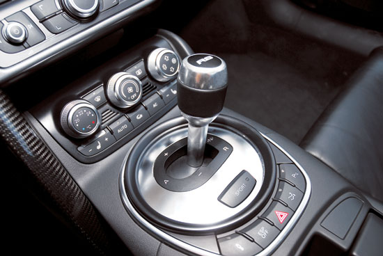 其实,我前面提到了快乐的源泉,这不是指发动机,不是指四驱系统,而是指Rtronic变速器,有了它完美的表演,发动机的动力才能够淋漓尽致的表现,不,是放大。Rtronic变速器能够在高速驾驶时,将转速调高到最大动力输出范围内,然后再换上更高的挡位,这如同模拟赛车手的动作,能够让动力在换挡的间隙尽可能少的流失。当然随之带来的是换挡时来自动力机构的冲击,那种强烈的顿挫感,会让你时刻意识到驾驶的是一部超级战车,而不是追求换挡平顺如同坐在家里沙发上的舒适感。当然,您还可以采用方向盘拨片或者变速杆手动换挡,来满足自己的自主操控愿望,但是,多数情况下,您的动作比不上Rtronic的动作快。
