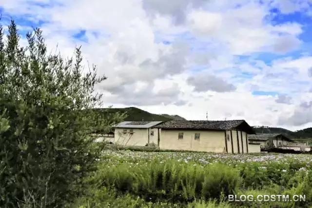 沿途能见到许多别具风情的民俗建筑点映于蓝天碧草之间,偶尔还有一群群散落着的牛、羊在眼前一晃而过。