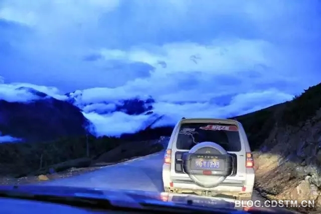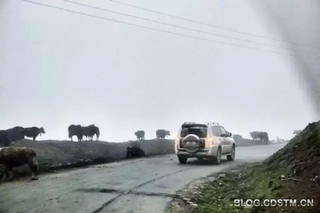 天慢慢黑了,我们也已经进入到云层之中,可愈发险峻的道路却仿佛没有尽头,偶尔还要躲避在道路上悠然自得的牛群,这给负责开车的同事们带来了更大的心理压力。