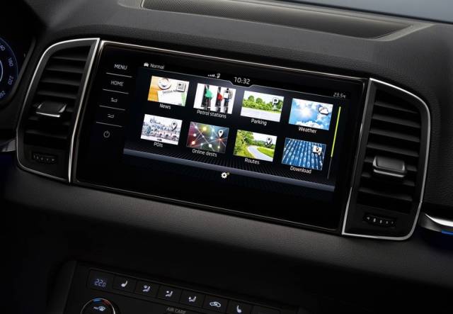 斯柯达Karoq内饰采用全新的设计,造型更加简洁,但这不妨碍其主打稳重、实用的理念。新车将是首款搭载全液晶仪表盘的斯柯达车型,并配有第二代信息娱乐系统,支持苹果CarPlay,安卓和MirrorLink手机互联。新车共提供了Columbus和Amundsen两套多媒体系统,带有Wi-Fi无线热点(Columbus可选装4G LTE模块)和市面上绝大部分主流手机互联功能。