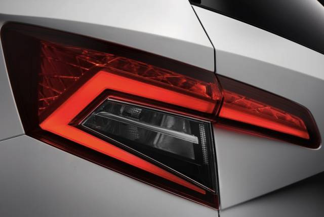 斯柯达Karoq乍一看就是缩小版的科迪亚克,整体设计延续了斯柯达品牌家族式的风格,与旗下小型SUV野帝截然相反,采用水晶元素的特点。瀑布式的进气格栅连接到两侧大灯组,同时前大灯采用LED光源,富有科技感。尾部的造型极为简洁,没有多余的线条和造型,“C”形尾灯有着切割工艺的质感,而且把行李厢门简化到了极致。新车长宽高分别为4 382 mm,1 841 mm, 1 605 mm,轴距为2 638 mm(四驱版为2 630 mm)。