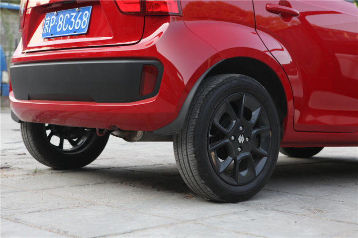 16寸的黑色的轮圈侧面看起来比例上也显得很大气(毕竟车身长度只有3.7 m),位于车身四角的轮拱有意设计出外凸效果,愈发增加车身的力量感。实际上,英格尼斯的底盘离地间隙已经达到了180 mm,比某些紧凑型SUV都要高,而极短的后悬也造就了它接近90°垂直的离去角。所以这台小精灵的实际通过性能其实很棒。