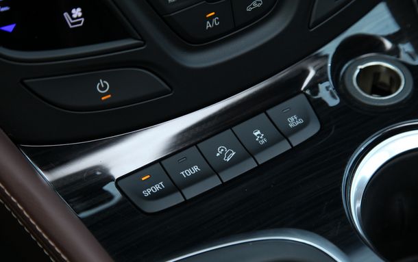 2018款别克昂科威的驾驶模式有四种:普通模式、巡航模式、运动模式和越野模式。在巡航模式下CDC主动悬架表现比较偏软,过滤颠簸效果很好舒适性很高。运动模式下,CDC悬架开始偏硬,悬架支承效果更好,操控感更强,但除非驾驶方式更加暴力否则很难感觉到更为澎湃充沛的动力,如果只是日常驾驶很难感觉运动模式与普通模式的区别。