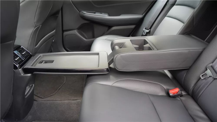 非常吸引我的,是后排中央扶手的小桌板设计,放下后和前方的中央扶手箱连通,形成一个可放置物品的桌面,提升了后排乘客使用便利性,也展现了“MM”理念对于空间极限挖掘的功力。