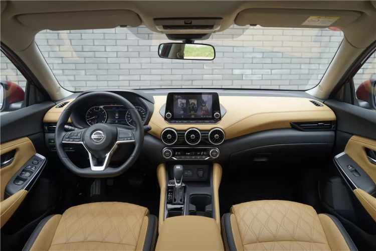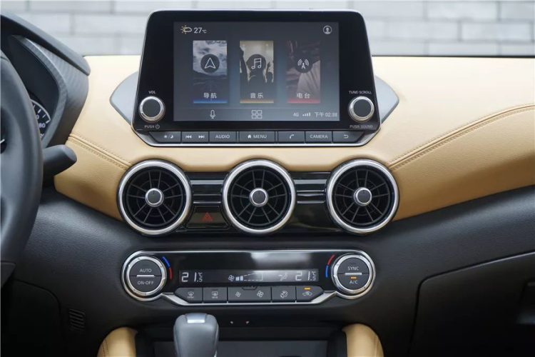 内饰的设计可以说说判若两车,非要挑的话只有方向盘上的日产Logo了。首先映入眼帘的是中控屏下方的三块圆形空调出风口,设计与质感非常上乘,虽然能让人联想起某豪华品牌,但搭配在全新轩逸上却毫无违和感。出风口下方的自动空调控制区是我最喜欢的设计,采用直观的旋钮和大尺寸按键,并没有因为烂大街的触控而改变操作便利性。中控屏尺寸为8英寸,常用键同样采用物理旋钮,菜单逻辑简单易用,但没有CarPaly等手机映射功能,手机导航的时候不太方便。