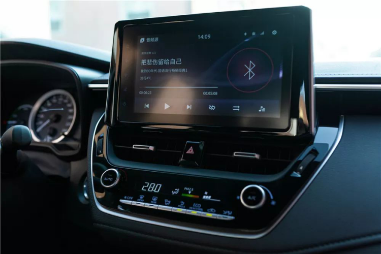 内饰设计部分,雷凌与卡罗拉保持了较高的相似性。中控台部分突出简洁化的设计思路,中控屏整合了绝大多数常用功能,精简了大部分按键,使得座舱前部整洁开阔。同时中控台部分的线条应用和设计元素也相对比较简单。对称式设计和不规则线条的应用是对保守和潮流审美的中和和妥协,朴素中带着简约之美。