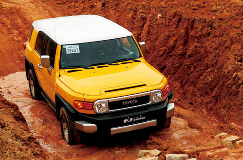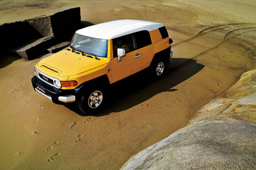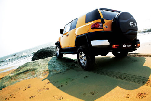 虽然FJ酷路泽于2007年年底才正式进入中国市场,但是通过某些进口渠道,中国的消费者却早早地在街头见到过它的身影。时尚前卫甚至可以说有些怪异的车身设计,让人们很难把它与Land Cruiser联系到一起,所以直到现在,它仍然可以算作一个“奇兵”出现在丰田汽车在中国市场的销售行列。在FJ酷路泽身上,我们仍然可以看到那些流行于上个世纪的FJ系列的经典造型——粗大的格栅、圆形的前大灯、几乎垂直的前风挡、白色方正的车顶以及丰富鲜艳的车身颜色,所以虽然时隔40多年,产品几经演变,我们仍然可以依稀看到当年那个驰骋了近25年的FJ40的风采。不过,丰田的设计师还是赋予了FJ酷路泽一些全新的设计元素,更加饱满的发动机舱盖、更加醒目的组合式前灯、圆角的后窗玻璃、三雨刮设计以及独特的对开式车门,FJ酷路泽同时也是丰田为数不多的几款使用“TOYOTA”英文字母作为前脸标识的车型。一切的设计思路都是为了让FJ酷路泽显得与众不同——复古加前卫,FJ酷路泽走到哪里都要成为众人的焦点。