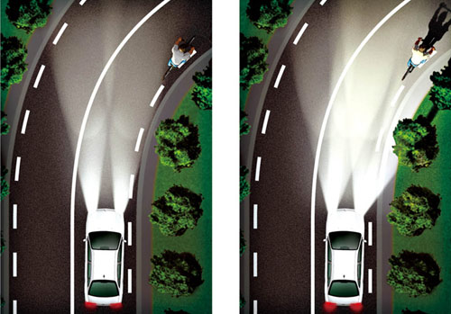 早期的氙气大灯多用于近光灯使用,现在很多汽车的远、近光灯都采用了氙气大灯。由于氙气大灯是采用高压电流激活氙气而形成一束电弧光,可在两电极之间持续放电发光。氙气替代了传统的钨丝,可以提供更高色温、更聚集的照明光束。氙气大灯的色温在4 000 K~6 000 K之间,远远高于普通灯泡。氙气大灯的光色为白色或淡蓝色,由于色温较高,视觉效果已接近蓝色。车用氙气大灯的色温并非越高越好。如果氙气大灯的色温达到8 000 K或10 000 K,对道路的照明效果反而会下降。