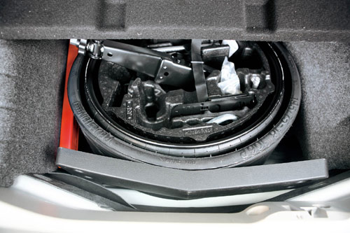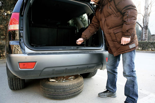 拆装要点(由于多次介绍过更换普通备胎的步骤,在此只介绍充气型备胎的充气方法):
