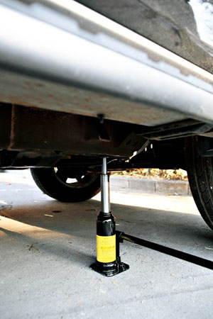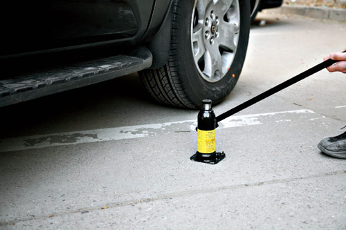 3.取出液压千斤顶,仔细阅读使用方法,举升汽车前应当关闭千斤顶放气阀门。
