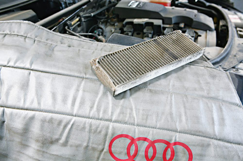 2.更换空调滤清器或花粉滤清器。大部分汽车都装有空调风道过滤装置,清洗汽车空调系统时应主动检查空调滤清器,对比一下新、旧空调滤清器的干净程度,说不定你的爱车也需要更换了。