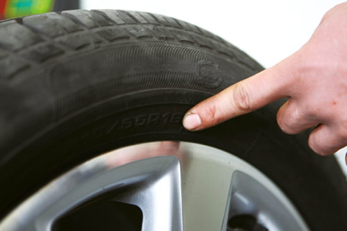 5.第三项测量轮毂直径,可以查看轮胎侧面标明的型号得知。